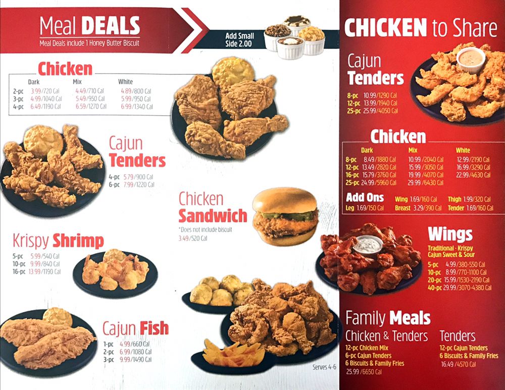 - Cajun Tenders Meal Deal - A delicious treat for just $9.99, served with a flaky biscuit.